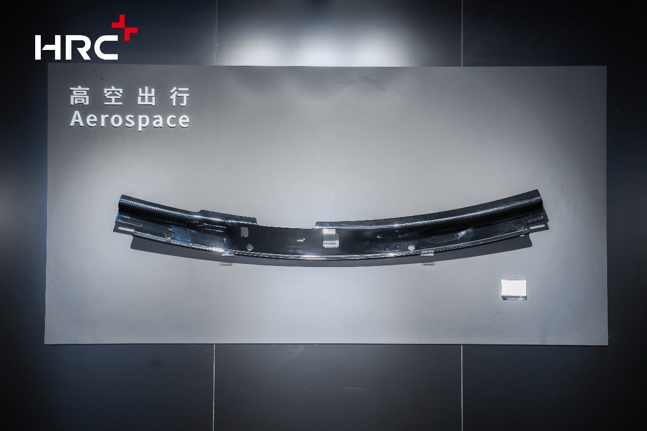 在商用大飞机领域,HRC也已成功打入全球航空制造供应链,成为空客、商飞等一流航空主机企业的合作伙伴。作为航空领域的创新成果,机舱门边梁采用高压树脂传递模塑成型工艺制备而成,具有孔隙率低、尺寸稳定性佳、精度高、一致性好的特点,生产节拍快至15分钟。这款集轻量化、高性能与大批量生产优势于一体的创新产品,完美契合现代民航制造业对“高效能、批量化”的核心诉求,是赋能航空轻量化的理想产品。