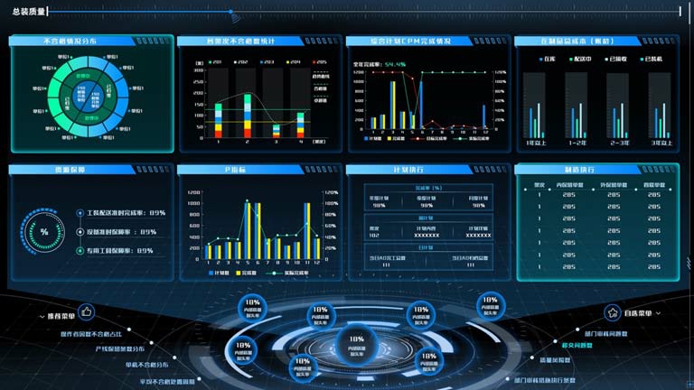 (3)二维指标管控。从生产、技术、质量业务域等维度建立总装生产管控指标体系,对指标进行分层分级管理,通过数据可视化手段对指标进行呈现。同时,基于历史数据,建立数据分析模型,实现对指标的预测预警。