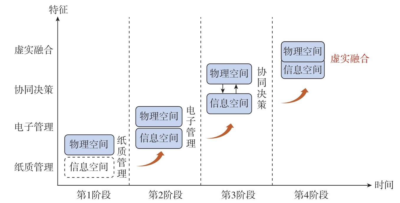 (2)信息空间的电子管理。随着信息技术的引入及发展,MES系统、PDM系统及CAPP系统等相继构建,初步实现了数字化的工艺设计与管理、作业执行、生产管理、质量管理等。工艺人员、生产人员、管理人员等可通过信息系统进行信息查询及处理,极大地提升了工作效率。基本实现生产、技术等关键业务域信息化全覆盖,初步实现了无纸化。但此阶段仍然依靠人工经验进行调整决策,存在主观性强、问题发现不及时等问题。