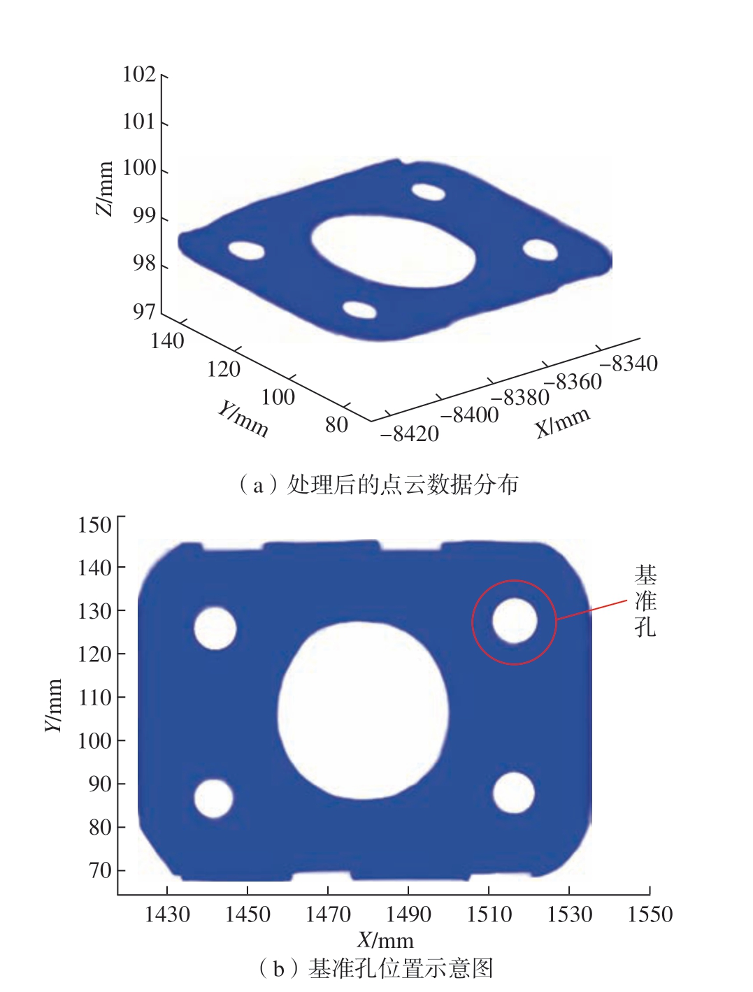 图9 处理后的点云数据分布和基准孔位置示意图