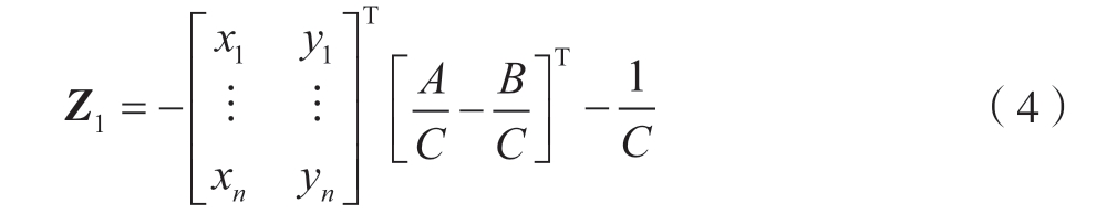 通过式(3)求出系数A、B、C 后,对Z 坐标值Z1 进行拟合计算,即