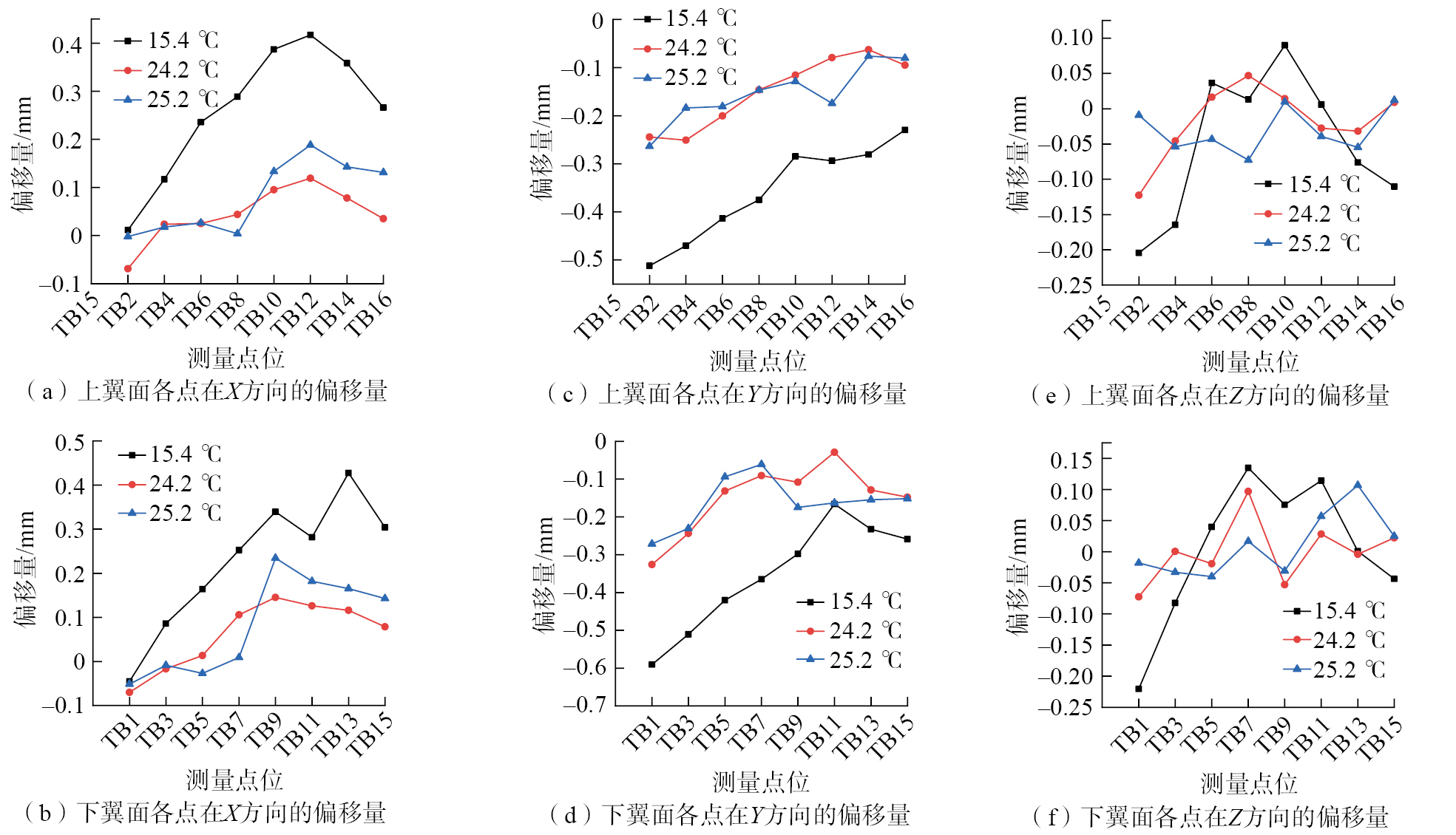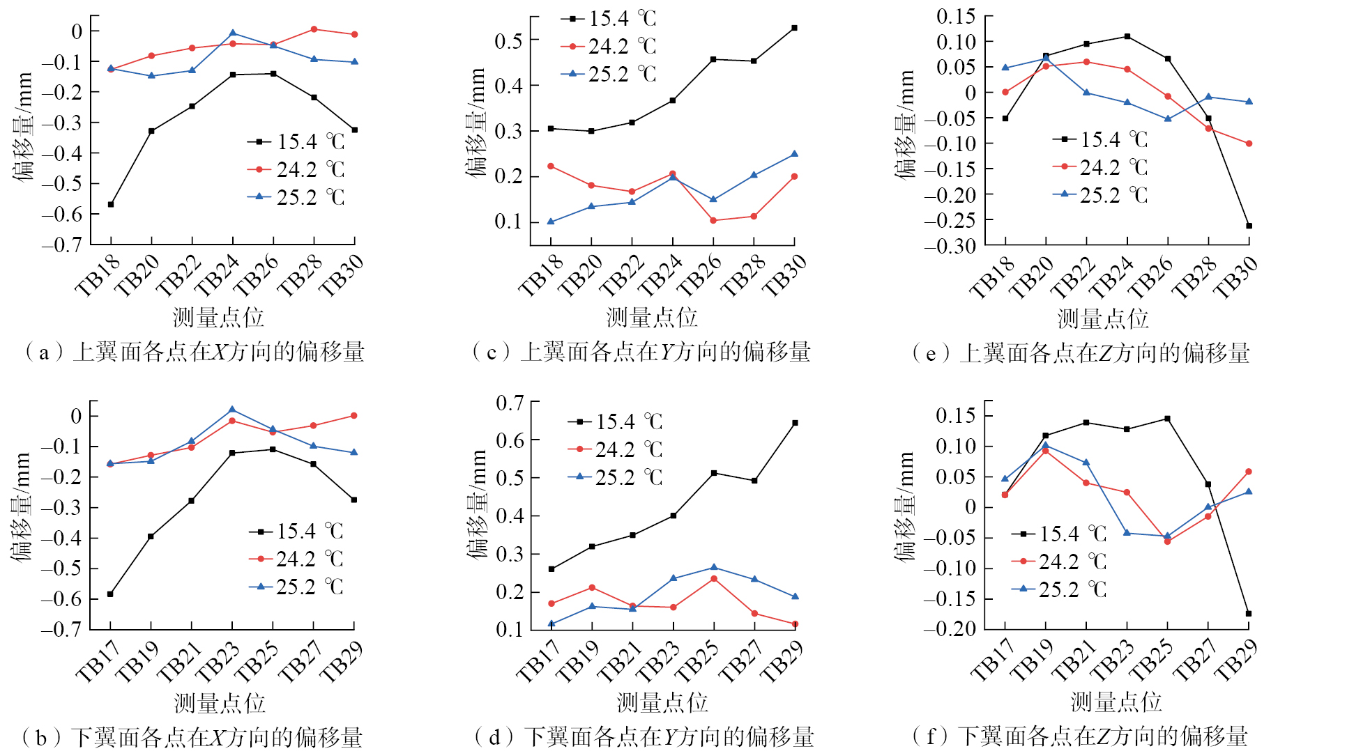 工艺装备(如型架、夹具等)在飞机装配过程中是必不可少的工具,主要用于定位和固定飞机零部件,从而保证飞机的装配精度[ 郭飞燕, 刘检华, 肖庆东, 等. 数字化装配工装工作状态监测评估及适应性控制技术[J]. 航空学报, 2023, 44(16): 427914.GUO Feiyan, LIU Jianhua, XIAO Qingdong, et al. Monitoring and evaluation of working condition and adaptive control technology for digital assembly tooling[J]. Acta Aeronautica et Astronautica Sinica, 2023, 44(16): 427914. 1]。然而,翼盒装配型架工装具有尺寸大、使用周期长等特点,当温度剧烈变化时,会引起翼盒工装的热膨胀变形,如钢制材料(尺寸30 m)装配工装在温度变化为5 ℃时的工装变形量可达1.8 mm[ 杨宝旒, 俞慈君, 金涨军, 等. 激光跟踪仪转站热变形误差建模与补偿方法[J]. 航空学报, 2015, 36(9): 3155–3164.YANG Baoliu, YU Cijun, JIN Zhangjun, et al. Thermal deformation error modeling and compensation approach for laser tracker orientation[J]. Acta Aeronautica et Astronautica Sinica, 2015, 36(9): 3155–3164. 2],严重影响飞机的装配精度[ 李婷, 李建双, 缪东晶, 等. 温度条件对大尺寸测量装置精度影响的研究[J]. 计量学报, 2019, 40(6): 975–979.LI Ting, LI Jianshuang, MIAO Dongjing, et al. Study of temperature states influence on the accuracy of large size measuring devices[J]. Acta Metrologica Sinica, 2019, 40(6): 975–979. 3]。