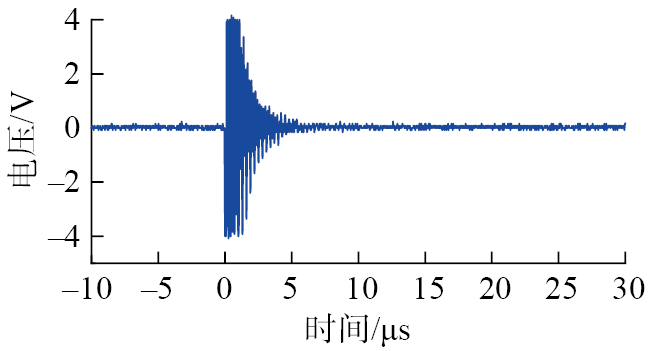 式中,UC0为电容两端的电压;VDC为电源电压。在电容放电过程中,其两端电压近似等于直流电源的供电电压。此时,放电电流的主要通路由阻尼电阻和超声换能器构成。改变阻尼电阻的阻值可以改变激励换能器的强度,从而改变测量的灵敏度,进一步有