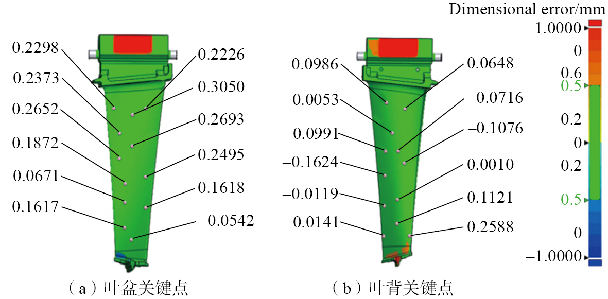 Fig.5 Schematic diagram of dimensional deviations in key points of blade casting[ ZHAO D Y, ZHOU L Y, WANG D H, et al. Integrated computational framework for controlling dimensional accuracy of thin-walled turbine blades during investment casting[J]. The International Journal of Advanced Manufacturing Technology, 2023, 129(3): 1315–1328. 38]