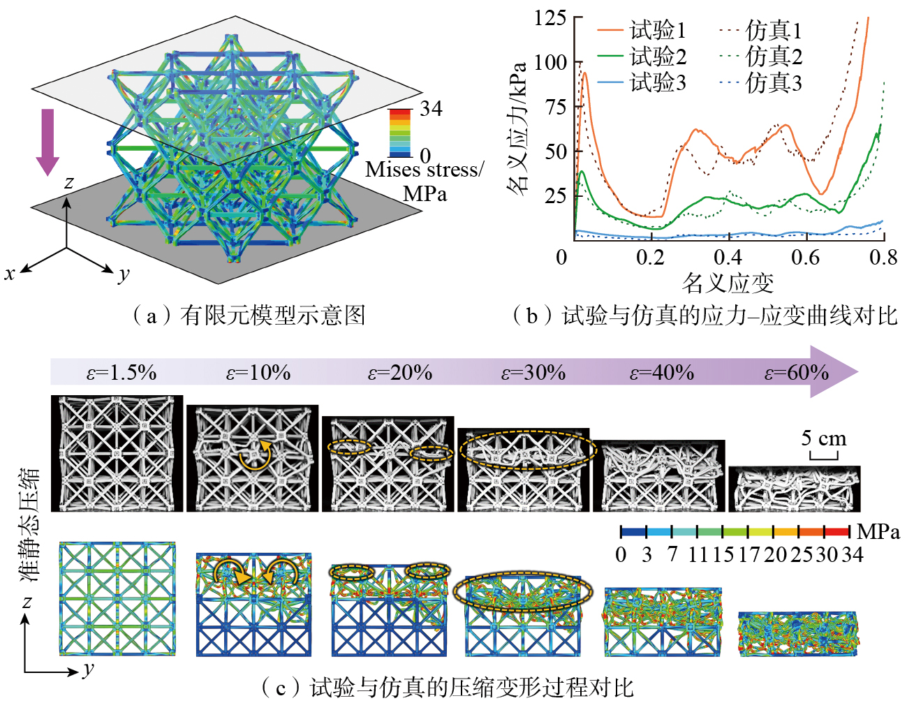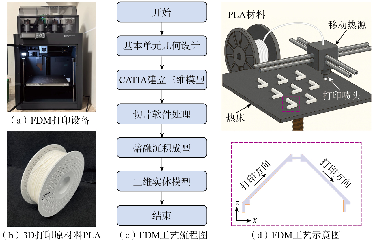 当前,力学超结构的制备高度依赖于增材制造技术(如熔融沉积成形[ KRISTIAWAN R B, IMADUDDIN F, ARIAWAN D, et al. A review on the fused deposition modeling (FDM) 3D printing: Filament processing, materials, and printing parameters[J]. Open Engineering, 2021, 11(1): 639–649. 8]、光固化成形[ HUANG J G, QIN Q, WANG J. A review of stereolithography: Processes and systems[J]. Processes, 2020, 8(9): 1138. 9]等),这类技术虽能精准复现复杂拓扑结构,却存在显著局限性[ WONG K V, HERNANDEZ A. A review of additive manufacturing[J]. International Scholarly Research Notices, 2012, 2012(1): 208760. 10]。一方面,增材制造的一体化成型方式导致超结构性能固化,一旦制备完成,其拓扑结构与力学特性无法调整,难以适配工况变化下的动态性能需求[ ABDULHAMEED O, AL-AHMARI A, AMEEN W, et al. Additive manufacturing: Challenges, trends, and applications[J]. Advances in Mechanical Engineering, 2019, 11(2): 1687814018822880. 11];另一方面,受打印设备尺寸与工艺限制,超结构的制备规模存在明显瓶颈,并且需在制备效率(如打印速度、分层数量)与成本(如设备能耗、时间成本)之间权衡,难以实现二者的平衡[ ZHENG X Y, SMITH W, JACKSON J, et al. Multiscale metallic metamaterials[J]. Nature Materials, 2016, 15(10): 1100–1106. CALIGNANO F, MANFREDI D, AMBROSIO E P, et al. Overview on additive manufacturing technologies[J]. Proceedings of the IEEE, 2017, 105(4): 593–612. HIRT L, REISER A, SPOLENAK R, et al. Additive manufacturing of metal structures at the micrometer scale[J]. Advanced Materials, 2017, 29(17): 1604211. KELLY B E, BHATTACHARYA I, HEIDARI H, et al. Volumetric additive manufacturing via tomographic reconstruction[J]. Science, 2019, 363(6431): 1075–1079. 12-15]。此外,增材制造为保证复杂拓扑的成型精度,常需设计大量支撑结构,这不仅导致材料损耗率显著上升,还需额外投入人力与设备进行支撑去除等后处理工序,进一步降低制备效率并推高综合成本[ JIANG J C, XU X, STRINGER J. Optimisation of multi-part production in additive manufacturing for reducing support waste[J]. Virtual and Physical Prototyping, 2019, 14(3): 219–228. 16]。这些固有缺陷严重制约了力学超结构从实验室原型验证向工程规模化应用的转化进程,成为其实际落地的关键障碍。
