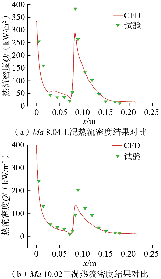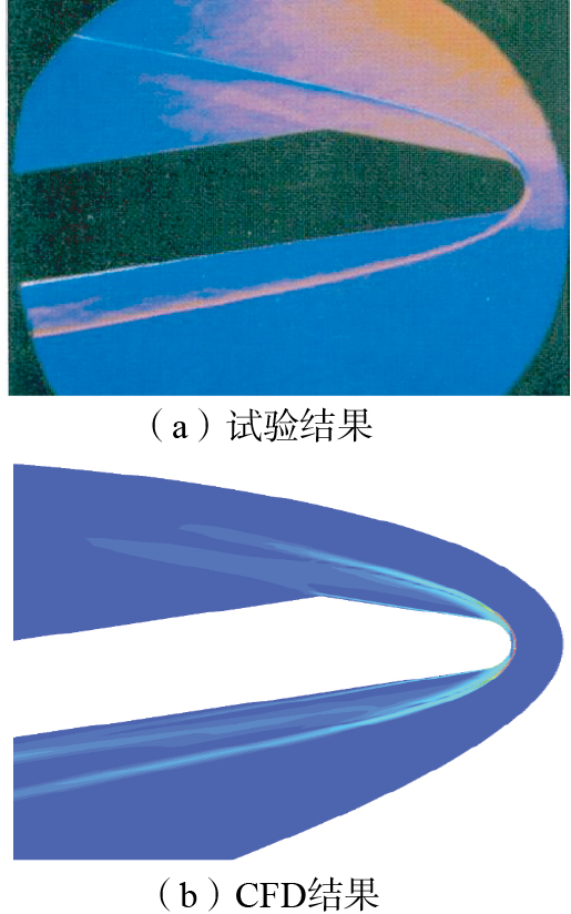 图4 密度梯度云图与试验纹影图对比[ 李素循. 典型外形高超声速流动特性[M]. 北京: 国防工业出版社, 2007.LI Suxun. Typical shape hypersonic flow characteristics[M]. Beijing: National Defense Industry Press, 2007. 14]
