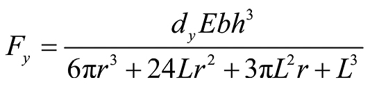 由文献[ 王亚豪. 基于超弹形状记忆合金的柔性蒙皮设计和实验验证[D]. 大连: 大连理工大学, 2021.WANG Yahao. Design and Experimental verification of flexible skin based on super-elastic SMA[D]. Dalian: Dalian University of Technology, 2021. 11]可知,线弹性小变形情况下拉力Fy与位移dy的关系为