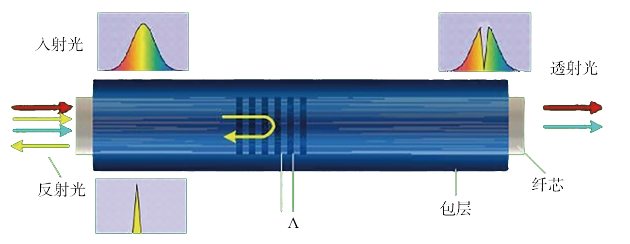 光纤光栅是一种对应变敏感的光纤传感器件,通过光刻技术在光纤上获得不同中心波长的光栅,并将光纤光栅为敏感器件封装成应变传感器,采用波分复用技术获取应变信息,可实现单根光纤对几十个应变测点的测量。