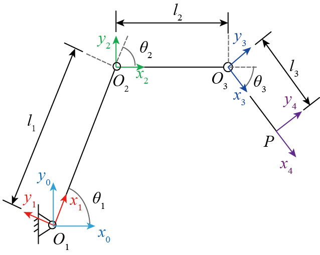 式中,l1和l2为O1O2和O2O3的长度,属于已知结构尺寸参数。