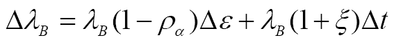 式中,ΔλB为光纤光栅回光波长的改变量;λB为光纤光栅中心波长;ρα为光纤的弹光系数;Δε为应变改变量;ξ为光纤的热光系数;Δt为温度改变量。