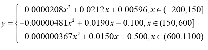在各应变范围内分别确定3个系数a,b,c即可确定3个曲线方程,即为应变-偏度转换方程。