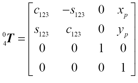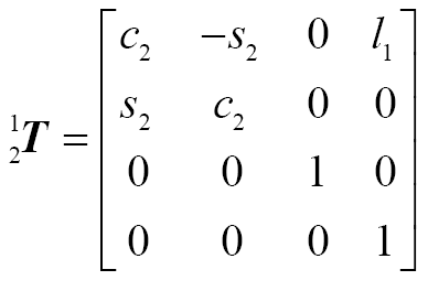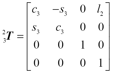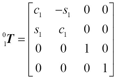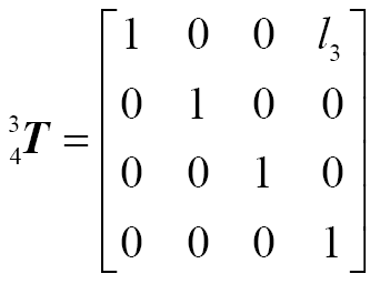 同理,坐标系{1}~{4}中相邻坐标系的变换矩阵如下。