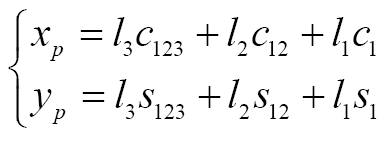 由于仅凭支撑件5的坐标无法计算末段连杆绕关节3的转角,采用