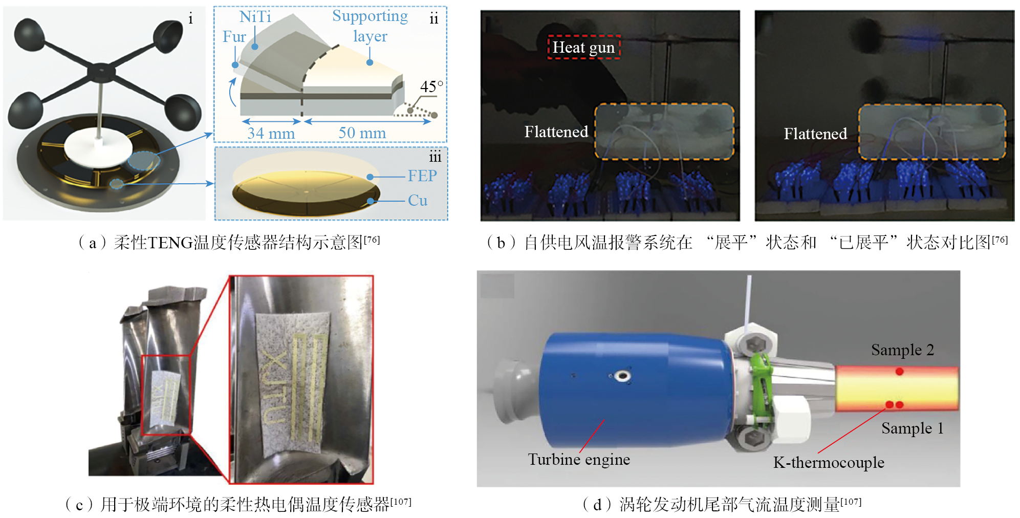 图7 柔性温度传感器及航空航天领域应用
