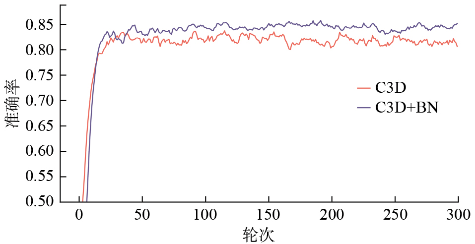 在胶接工艺时序行为识别任务中,C3D模型因时序数据的高动态性和动作重复性易陷入过拟合。高动态性导致时序信息有限,加剧参数更新波动;未归一化数据造成层间输入分布不稳定,迫使模型采用更低学习率和精细参数初始化策略,显著延缓收敛速度。同时,时序行为的微小位移及背景干扰易被未归一化特征放大噪声影响,加之不同装配场景的输入分布偏移,导致模型泛化能力下降。为此,本文采用批归一化处理[ IOFFE S, SZEGEDY C. Batch normalization: Accelerating deep network training by reducing internal covariate shift[C]//Proceedings of the 32nd International Conference on International Conference on Machine Learning-Volume 37. New York: ACM, 2015: 448-456. 15](Batch normalization,BN)来对网络进行正则化处理。
