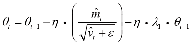 式中,和为偏差校正后的一阶、二阶矩估计;λ1为独立的权重衰减系数。