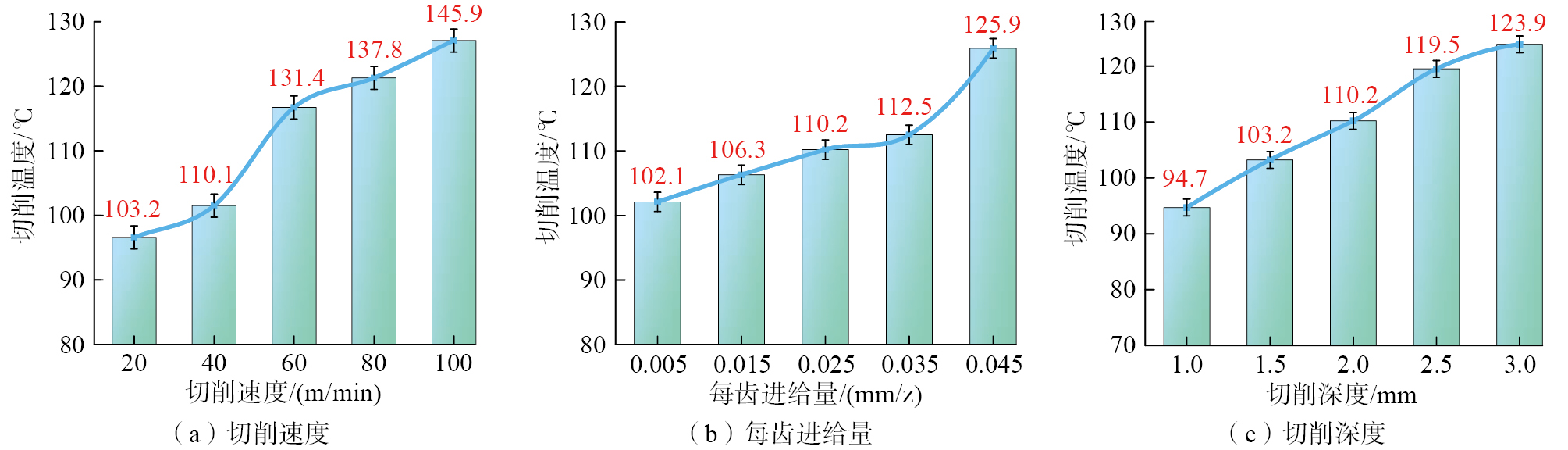 Fig.7 Variation of cutting temperature under different machining modes